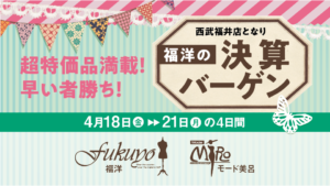 トピック福洋☆決算バーゲン★2025年4月14日Yozo福洋☆決算バーゲン★ 4月18日(金)から21日(月)の4日間年に一度の決算大ご奉仕 メーカー協賛☆超特価品が盛りだくさん! 春・夏 服地・・・得割 舶来高級服地・・・処分価格★モード美呂も協賛・割引多数☆ぜひ一度ご来店くださいませ