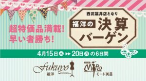 トピック福洋☆決算バーゲン★2026年4月11日Yozo福洋☆決算バーゲン★ 4月15日(水)から20日(月)の6日間年に一度の決算大ご奉仕 メーカー協賛☆超特価品が盛りだくさん! 春・夏 服地・・・得割 舶来高級服地・・・処分価格★モード美呂も協賛・割引多数☆ぜひ一度ご来店くださいませ