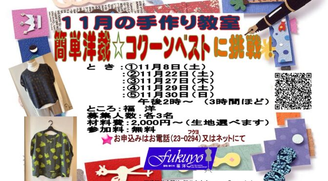 材料費:2,000円ほどかかります(生地によってお値段が変ります)